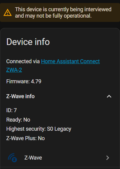 * Unless you added the node in recent versions of Z-Wave JS prior to v15.15.3, a few versions prior to this had a bug with the default inclusion strategy and S0 security. The core add-on currently has this bug.