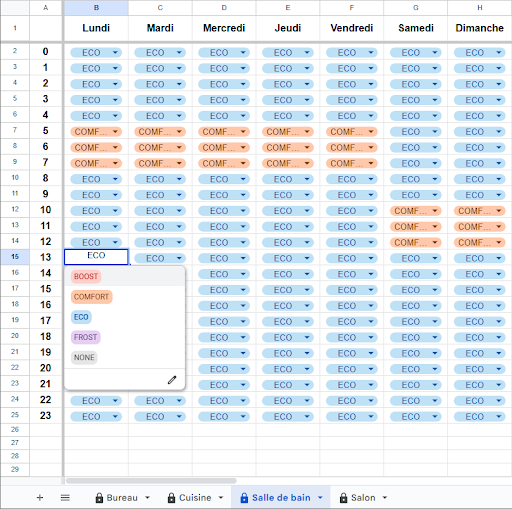 In âDeveloper Toolsâ, click on the tab âStatesâ, then search for âWeekly heating schedule BKPâ.