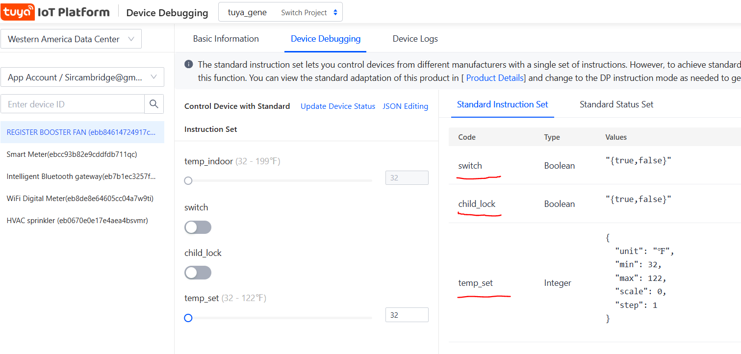 I looked in the tuya IOT portal for the debug info on this device, and theres only switch, child lock and set temp