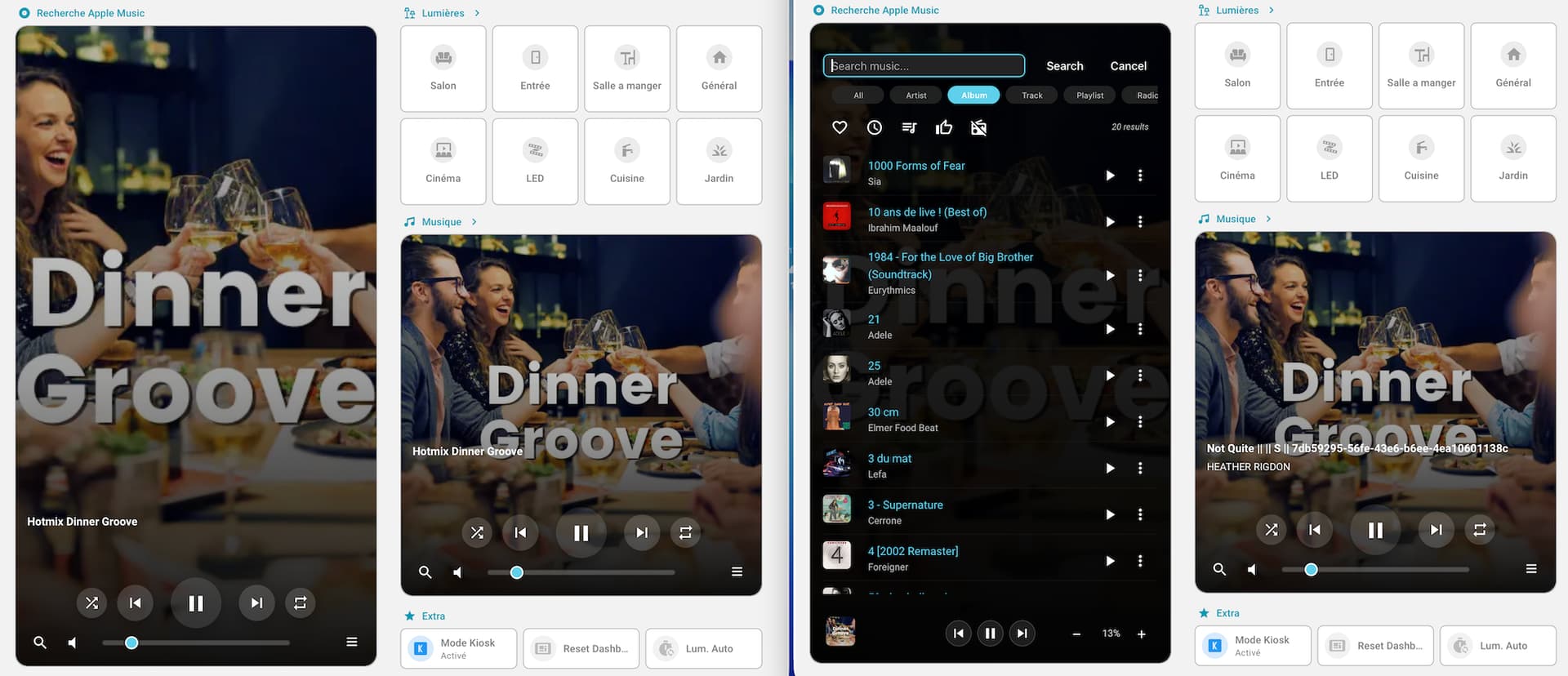 So when player start , that card is switched to YAMP (until payer is paused) , and the 2 first columns (based on visibility for 1 minute) are displaying YAMP search cards : Album apple music , another one with favorite radio , and last one for grouping ( not yet standalone card).