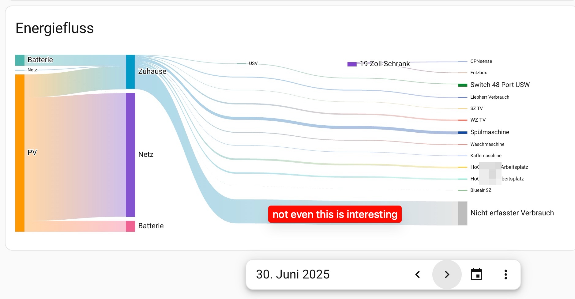 I really do not care about all the little stuff, that I am using, as I would have to add power detectors at least for every room (which I won’t do, as I would have to fiddle in the main power cabinet), OR have every power plug in the 25 year old house attachted shelly. And yes: It was a MAJOR stupidity 25 years ago, not to have somting installed like a bus system and use HomeAssistant back than