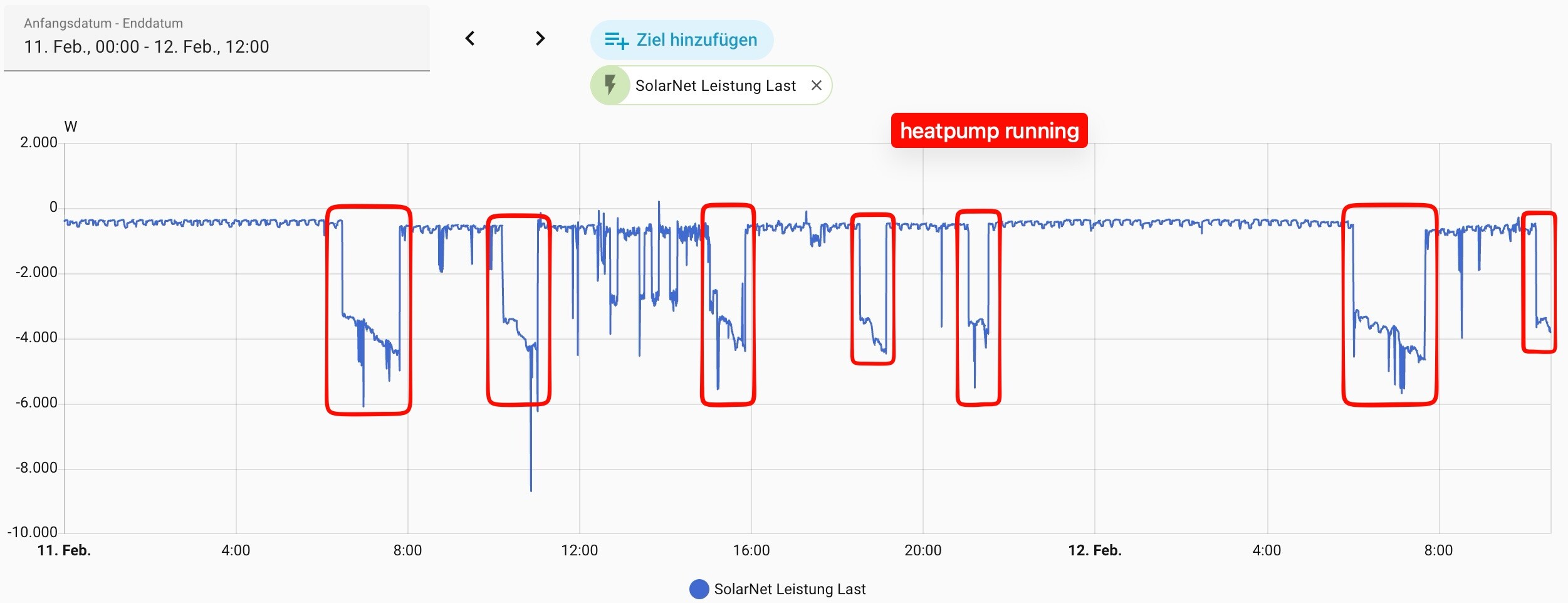 I noticed, that if the heatpump runs, the total power of the complete house is over 2500 W minimum. The idea now is to track the power without the heatpump power usage (so power is below 2500 W) and save somewhere a 30 minutes average. And if the power is over 2600 track have a new sensor called pmh-power which is (actual_power - actual_30_minutes_average). During the activity of the heatpump the 30 minutes average should not be calculated.