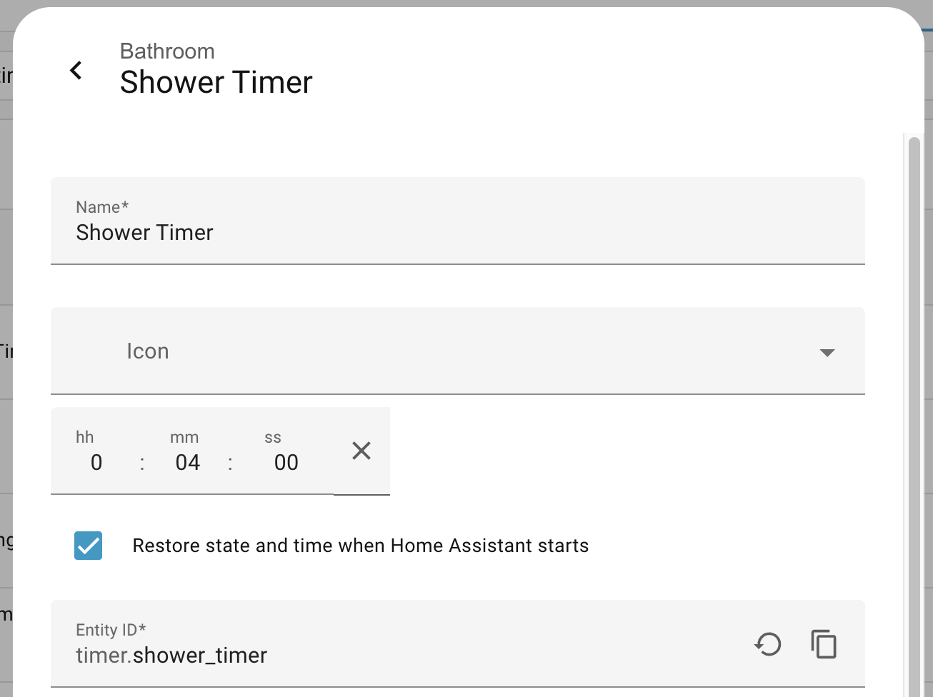 settings → devices & services → helper → the timer