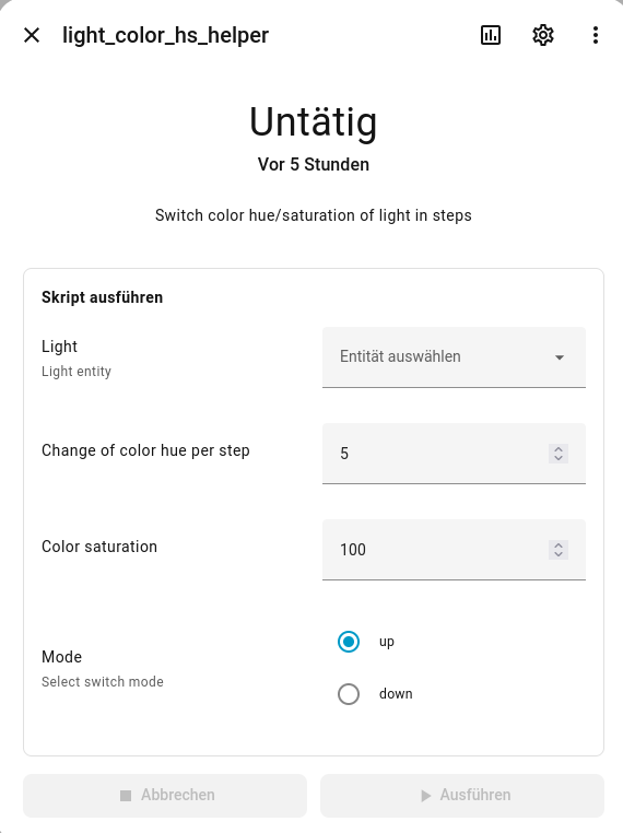 - on-hold calls repeatedly helper script “light_color_hs_helper” to change color of light “Globe”