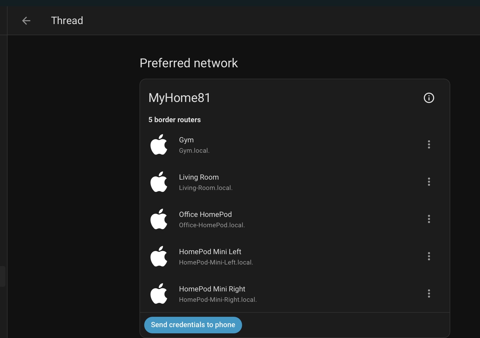 In my case HA is on Docker, Matter - the standard docker image as well, Thread - more or less looks like yours with my Apple Devices. I do assume it’s just trickier to get the IKEA device, but I know that Matter on HAOS operates differently than on Docker, so perhaps I might need OBTR, but not 100% sure… so I’m just trying all possible, I do want to get this working
