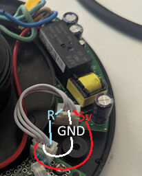 Opening up the iKettle base, you’ll find a 3-wire connector joining the power board and the logic board. These three wires are a 5v supply, GND and connection to the positive side of the relay coil. Bridging the 5v and relay control wires causes the relay to click on and would provide power to the kettle element.