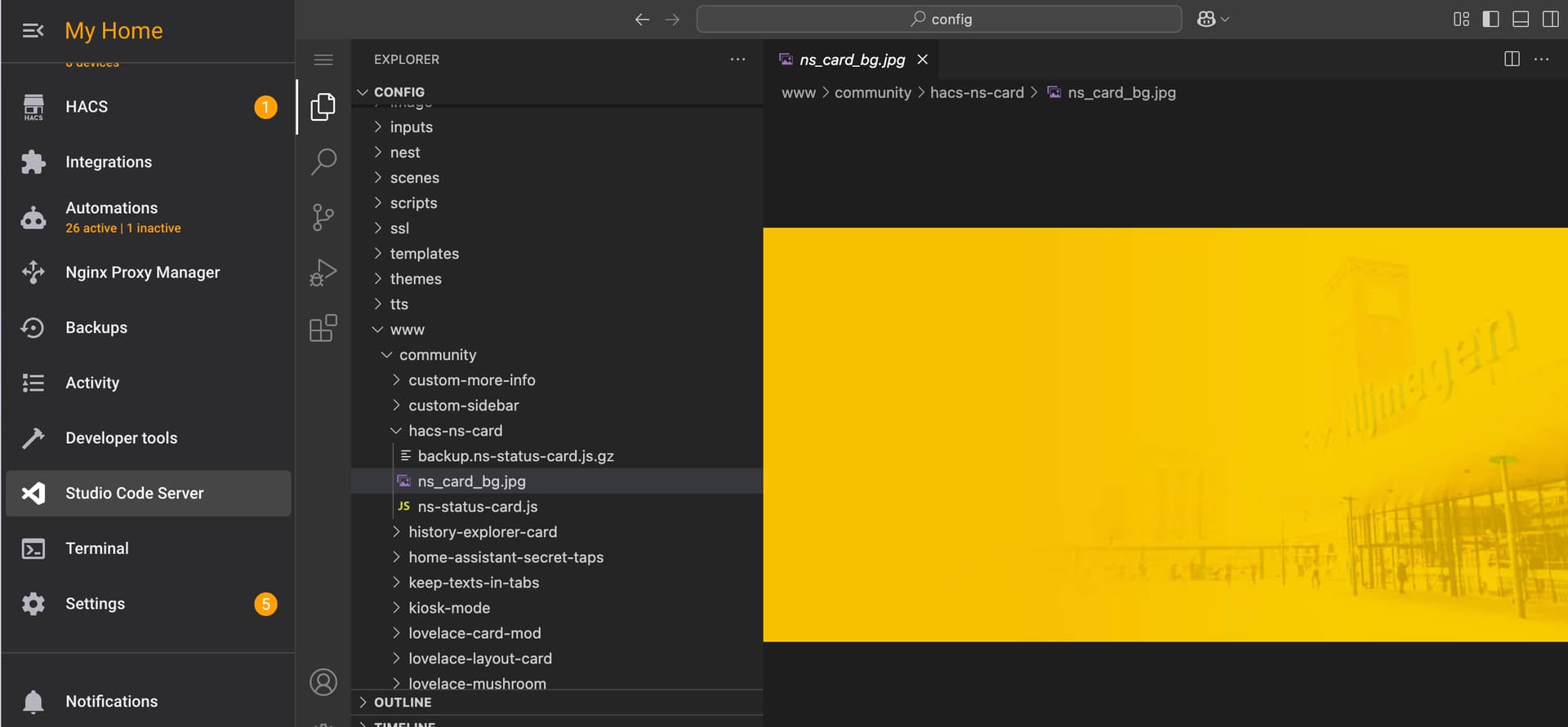 Is there a way to preview images directly within Visual Studio Code Server for Home Assistant?