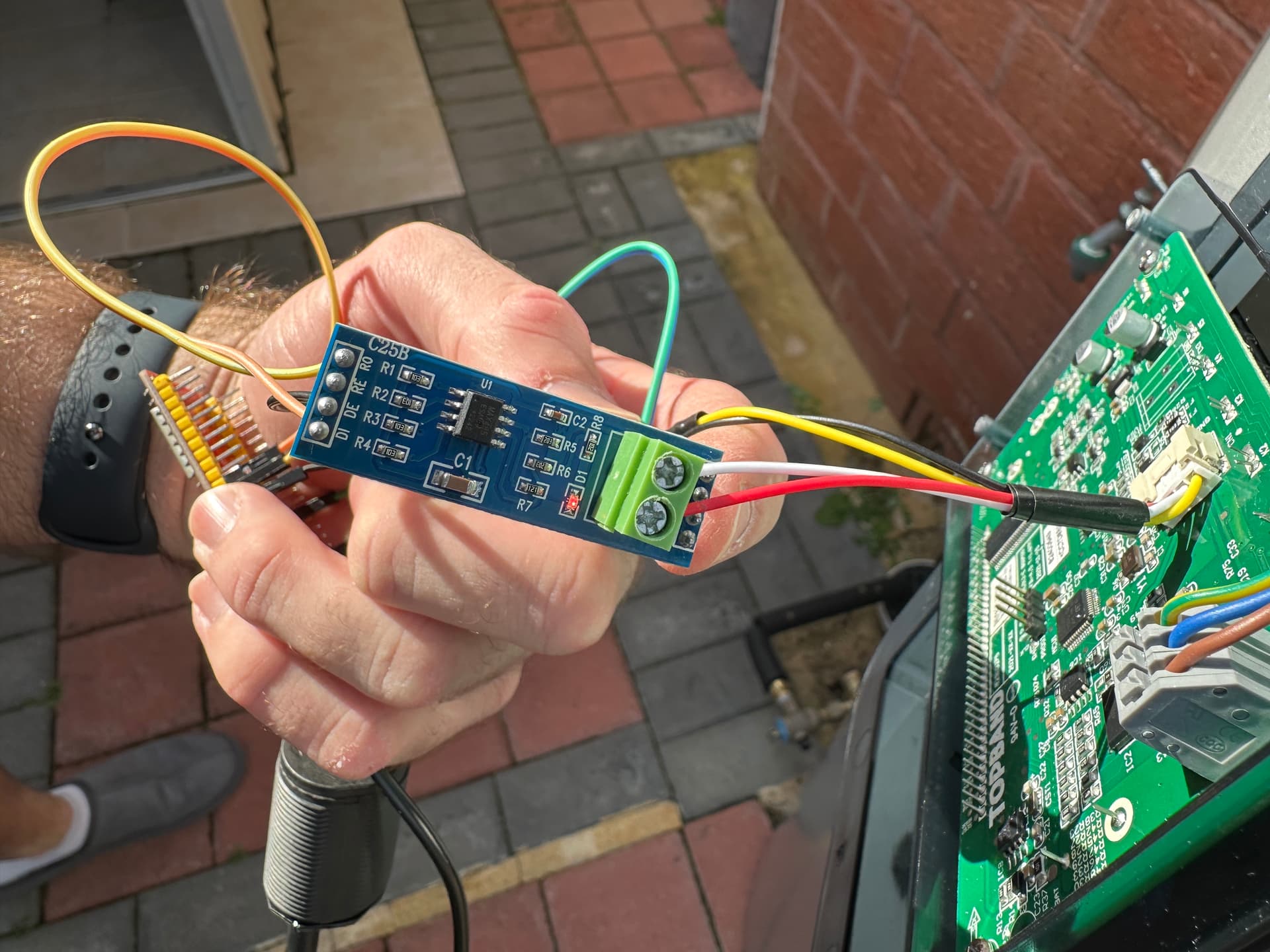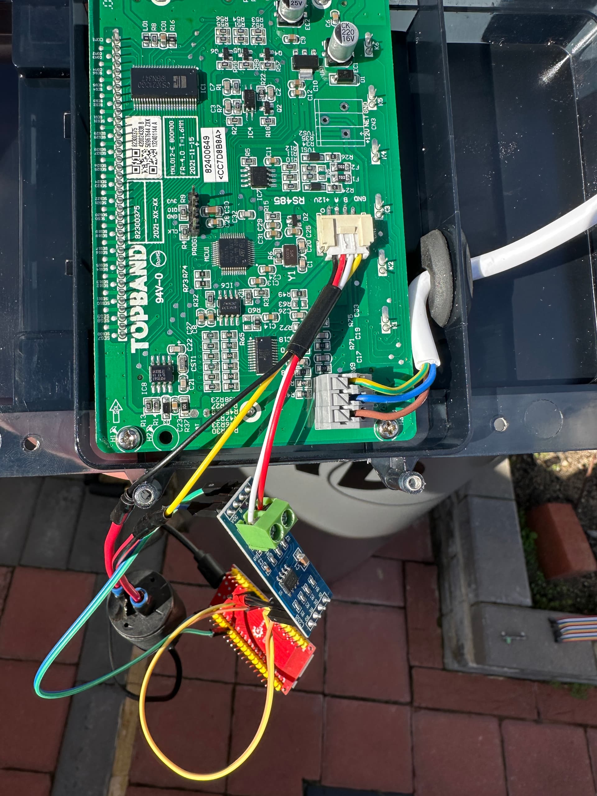 The pic is my finished product (RS485 board is hidden but you can see the wires going to it top left.) I have tidied it up since then