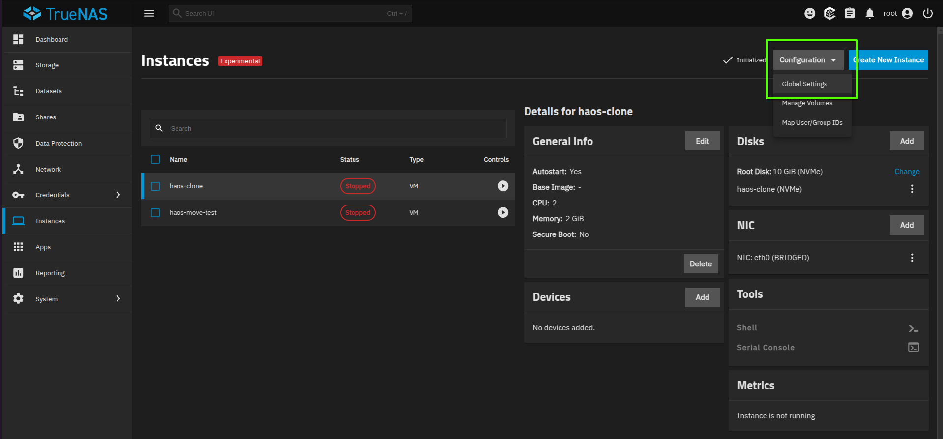 I don’t want to get too excited just yet, but on the T3 podcast, they were talking about some continued improvements to the Instances coming in the fall 25.10 release, hopefully including the ability to import from other formats like qcow2. HAOS was mentioned, and with a little luck, on future releases of TrueNAS, we’ll be able to simply download the HAOS image and select it from the UI to import it. No more having to use the command line extract or write the image to a zvol!