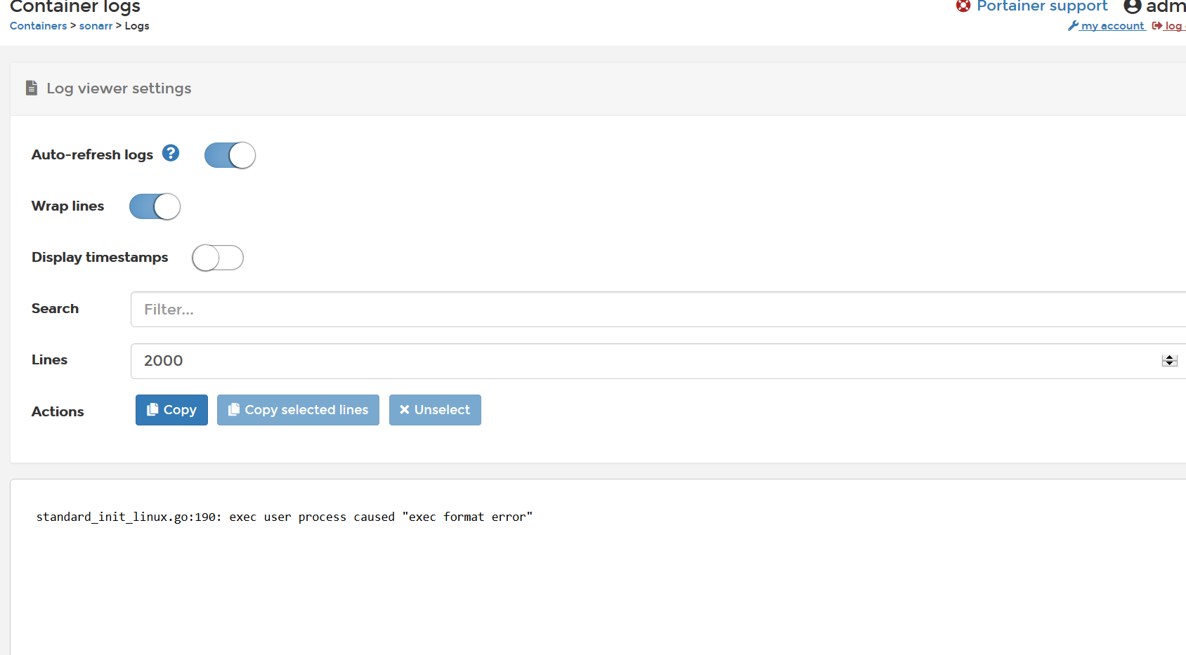 I manged to create a container pulling the image from linuxserver/sonarr