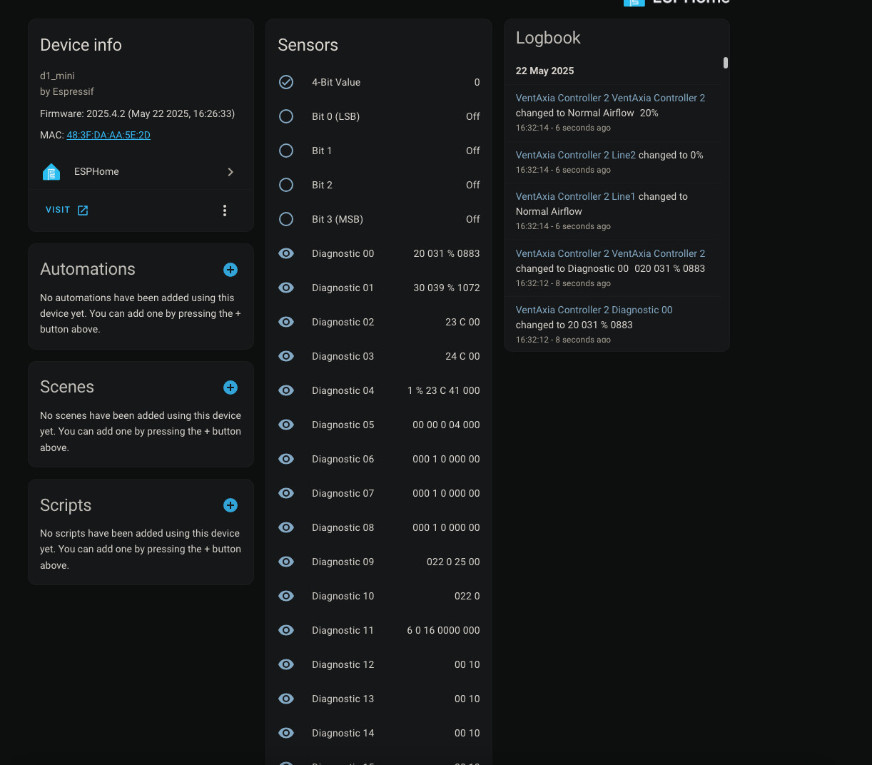 If the VentAxia device uses CANBUS that would be amazing, I will investigate this in a week’s time.