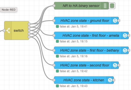 Just like @Jonaz80 noted somewhere, the WebClient items don’t seem to be able to identify the triggering Object, and the json I’m using references the individual Object’s connections, so these are tediously created one-per-HVAC. In Node-RED the binary_sensor node is similar in that which most of the config is agnostic to the specific binary_sensor, the basic config of the node has a hard-defined entity name that cannot be taken from the incoming msg variable. So these are similarly near-identical duplicates (Grrrrrr) with a switch node diverting the incoming call from Cortex based on the ‘per-HVAC string in the json’.