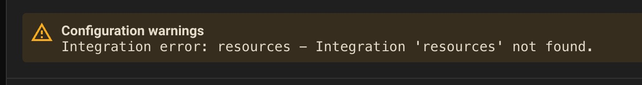 Integration error: resources - Integration ‘resources’ not found.