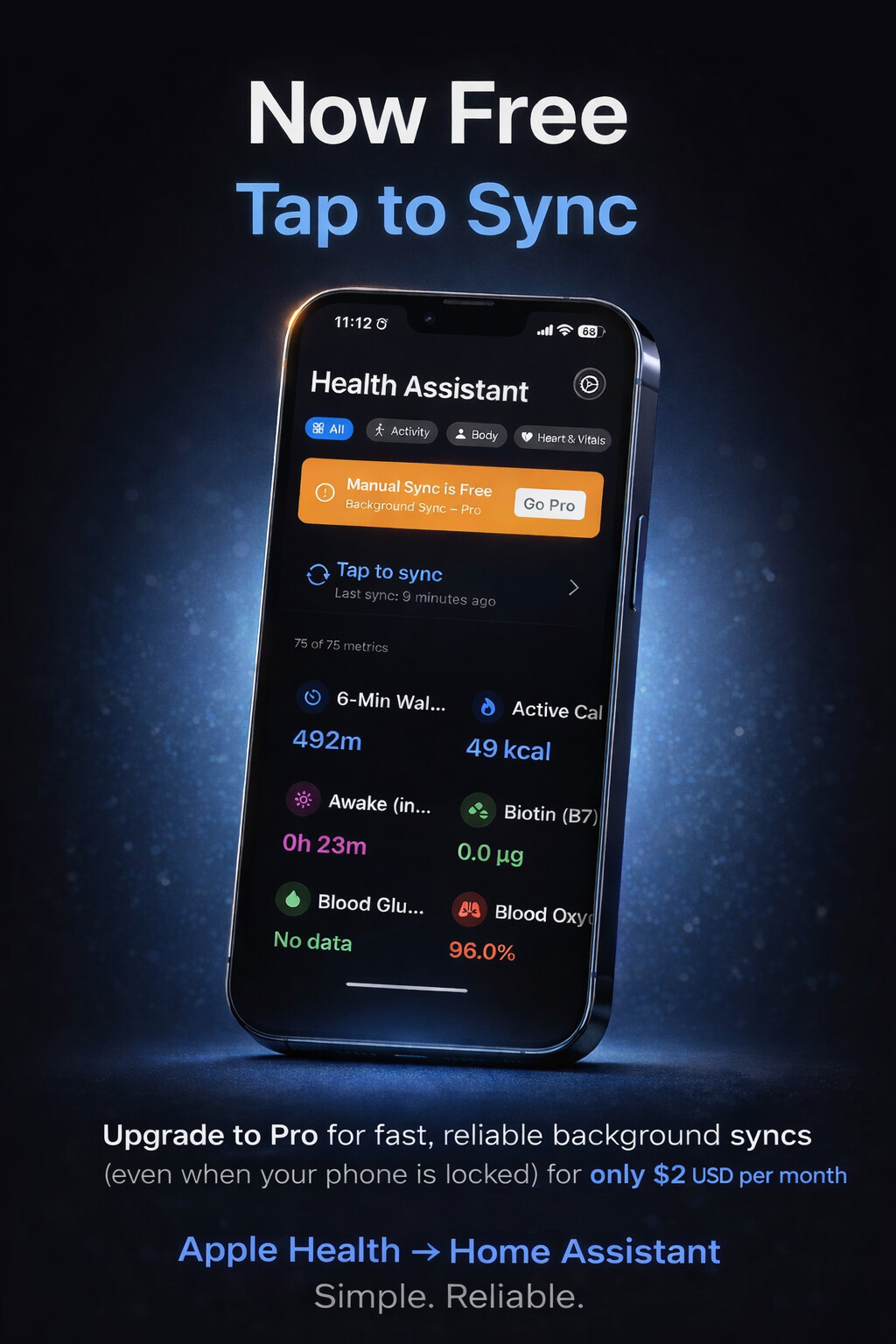 Simple tap to sync your apple health data to home assistant. With an optional subscription to automate background syncs through the day, even when your phone is locked!