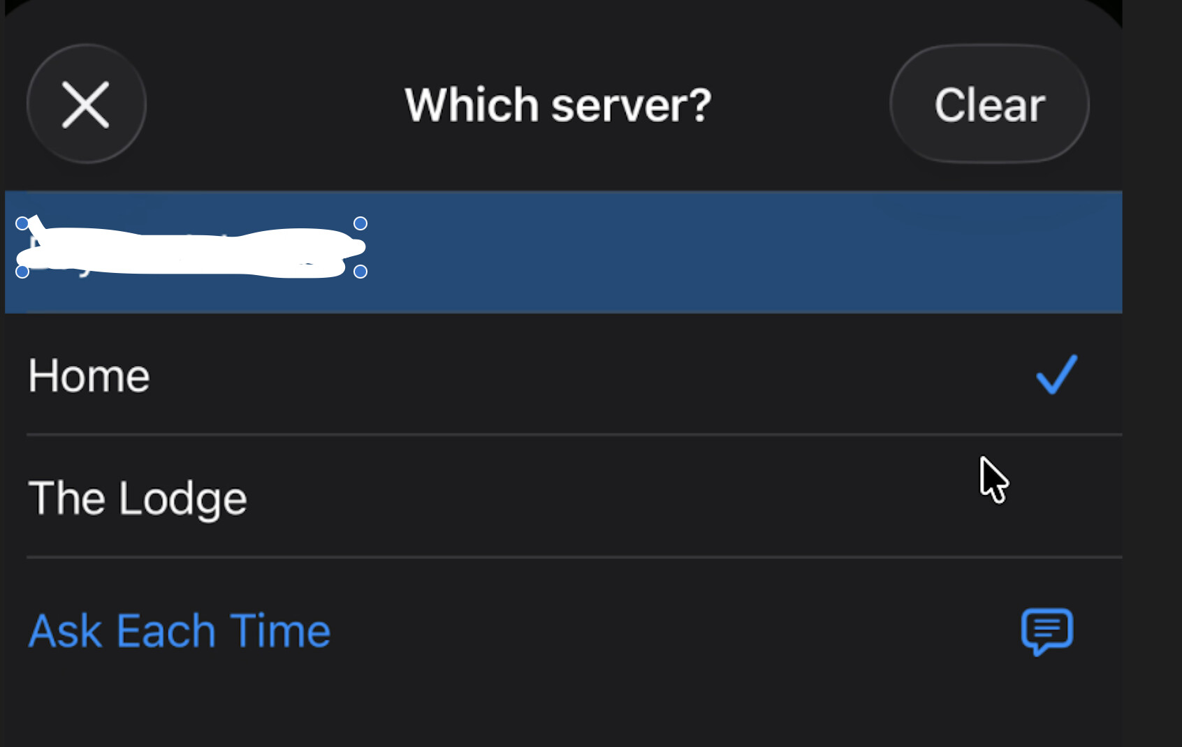 This works fine, but Siri asks me to choose which server each time, presenting a list to choose from.