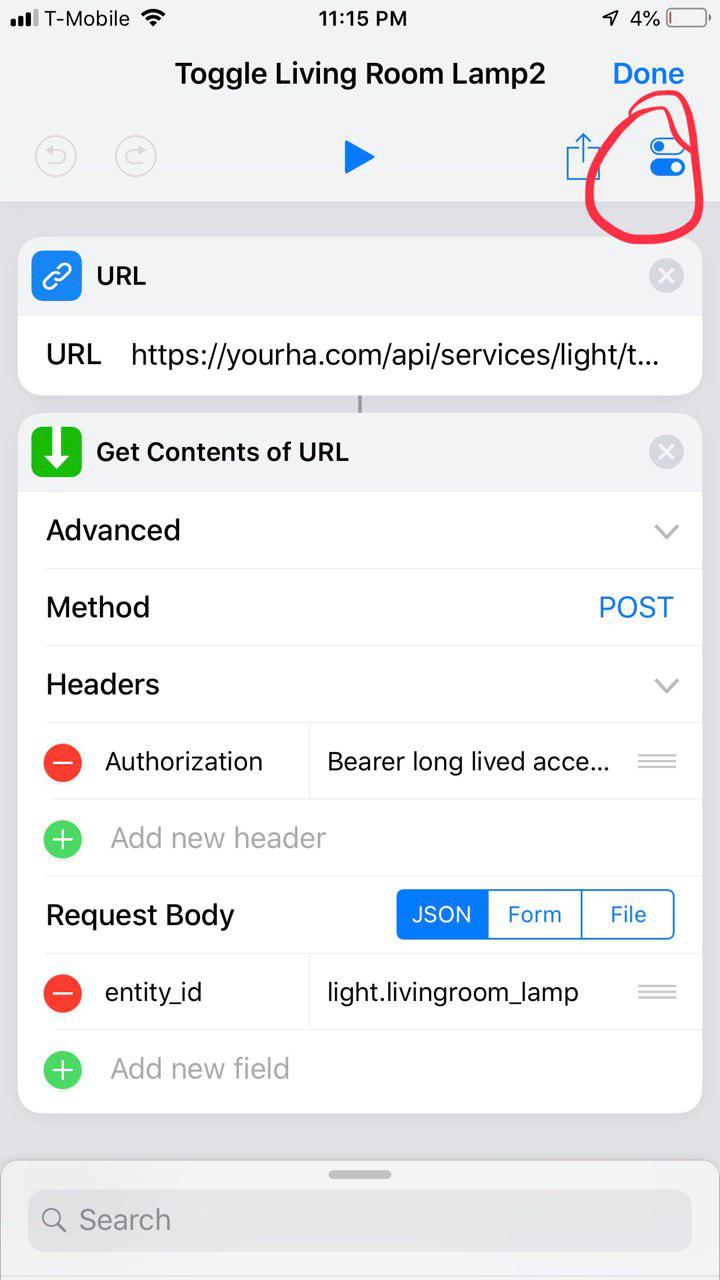 Now we’re ready to create our first shortcut! We’ll start off with an easy Service Call to toggle a light using the Rest API!