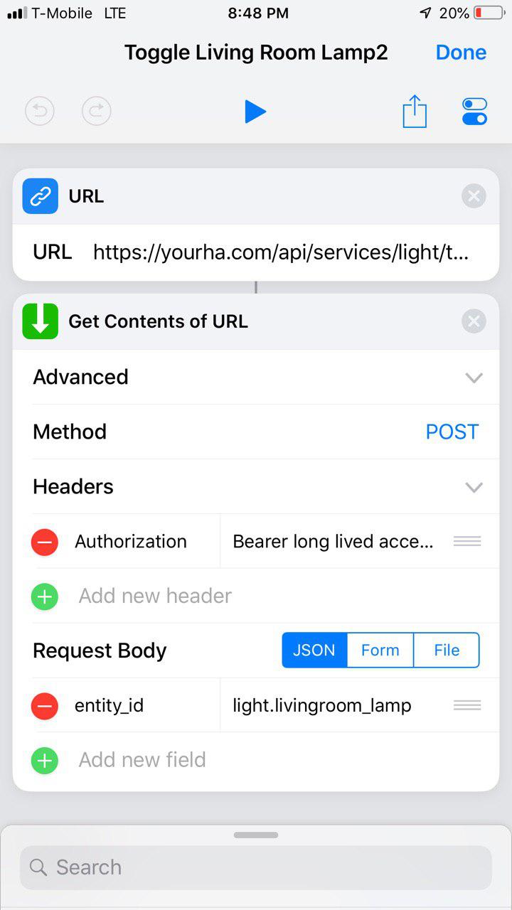 If you also want to receive the state back of the entity of choice then follow the rest of this tutorial. If you just care about turning stuff on and off then just leave now and go have fun with your new shortcuts.