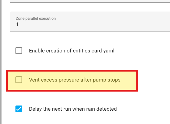 Ciao! is it possible to add a solution so that for example it finishes watering the last zone and 3 seconds earlier turns off the pump before turning off the zone valve. This will prevent maintaining high pressure in the pipes of around 7-8 bar until the next watering. the idea is that the water will flow out freely and relax the pipes.
