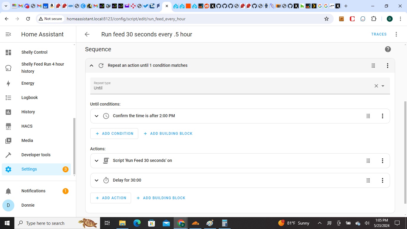 What I really want to know is can this be done with the visual editor and not yaml? I am really new to setting up scripts. I see all the options with building blocks for repeat but they are not working for me. I have not learned how to work with YAML and was hoping to avoid it. I see the options to make it repeat until and it looks like I can make it repeat during set times like between 5 am and 6 pm.
