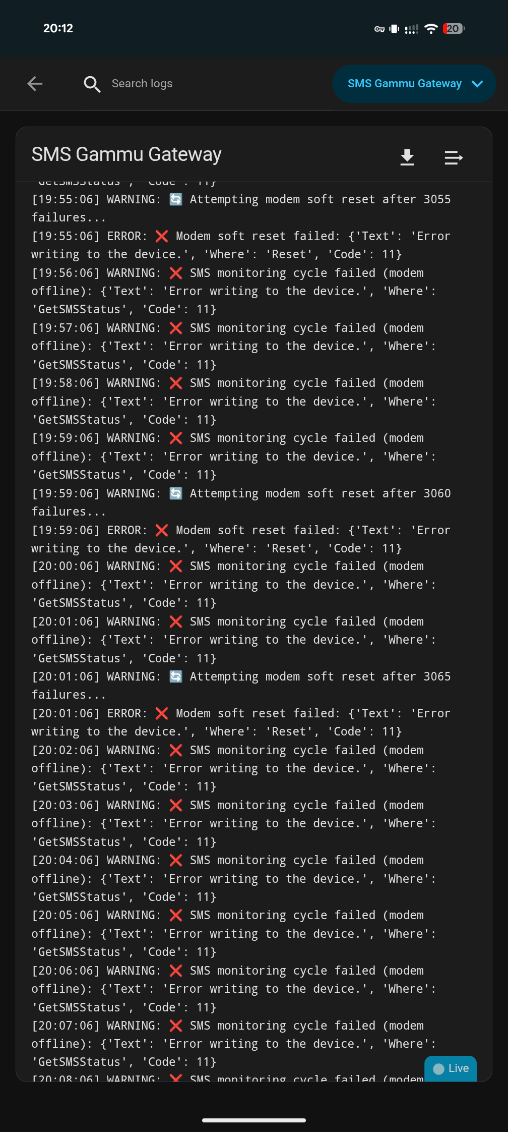 [07:48:53] INFO: Starting SMS Gammu GatewayâŚ