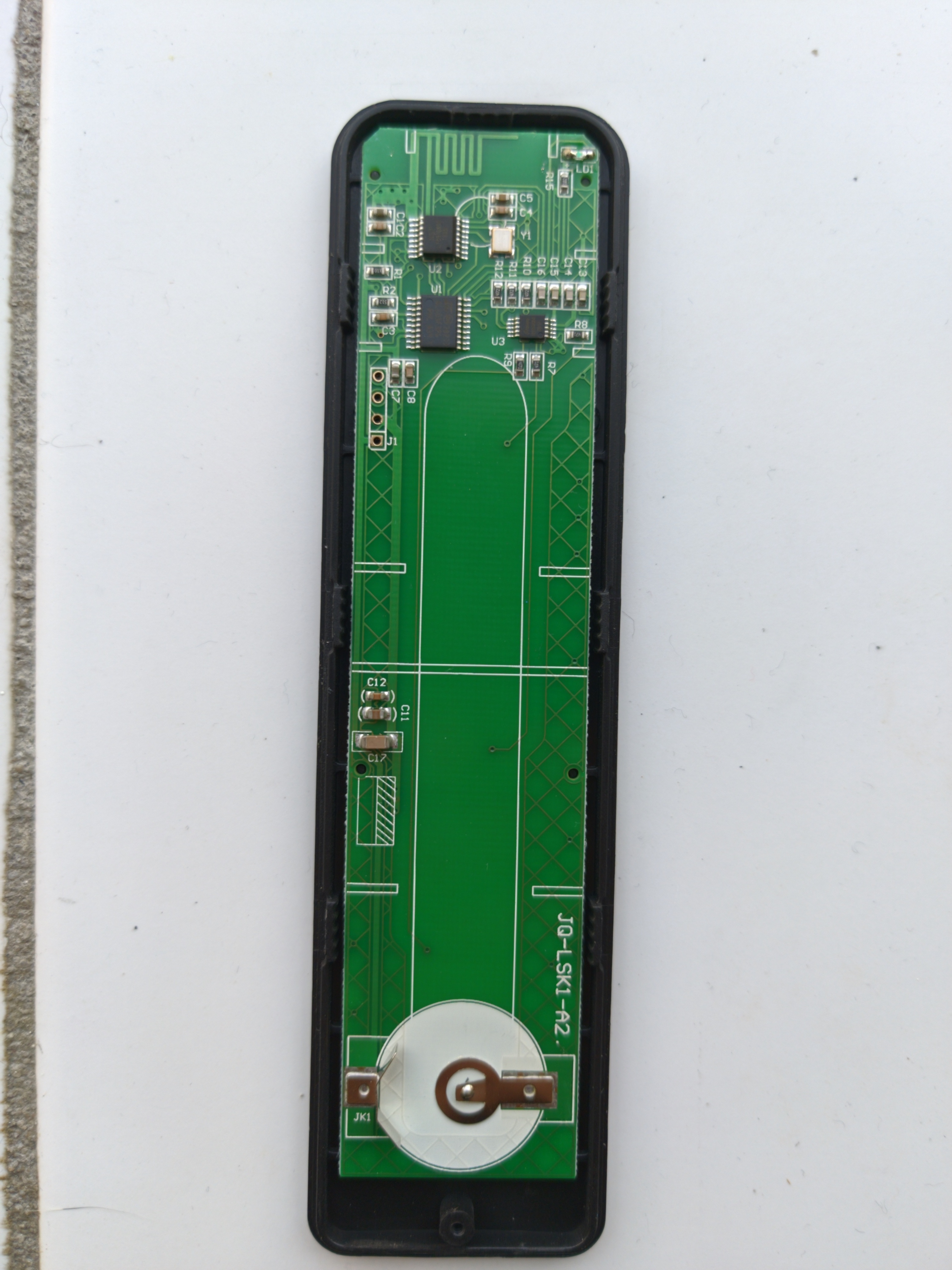 The first photo is the “button and capacitive touch” side, the second and third photo are the back of the board (where the battery, CR2032, is located).