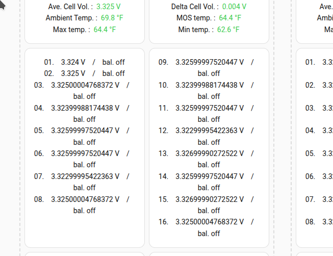 Hey, I just released a new update for the BMS Battery Cells Card on GitHub. It’s a pretty comprehensive update. I have added a detailed view where you can display significantly more information, optionally with a bar chart, cell fields, or a simple list with balance-indicator at the bottom. Maybe that is helpful. ![]()