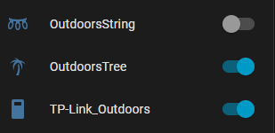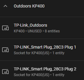 TP-Link_Outdoors acts like a group switch, i.e. it switches the other two on and off together if I need to; I’m not using it, so I could disable the entity, but so far, it hasn’t bothered me, and I address the other two separately