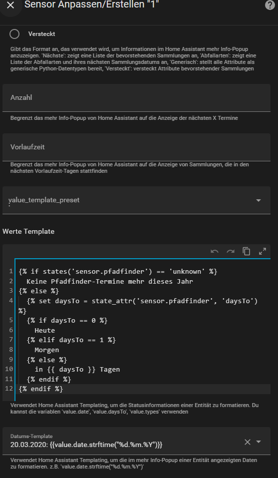 I’ve created a sensor within the integration. Currently, there are no upcoming data entries for this sensor in the foreseeable future anymore (in 2025). As a result, the sensor is shown as “unknown.” However, my template is being ignored and still displays “unknown.”