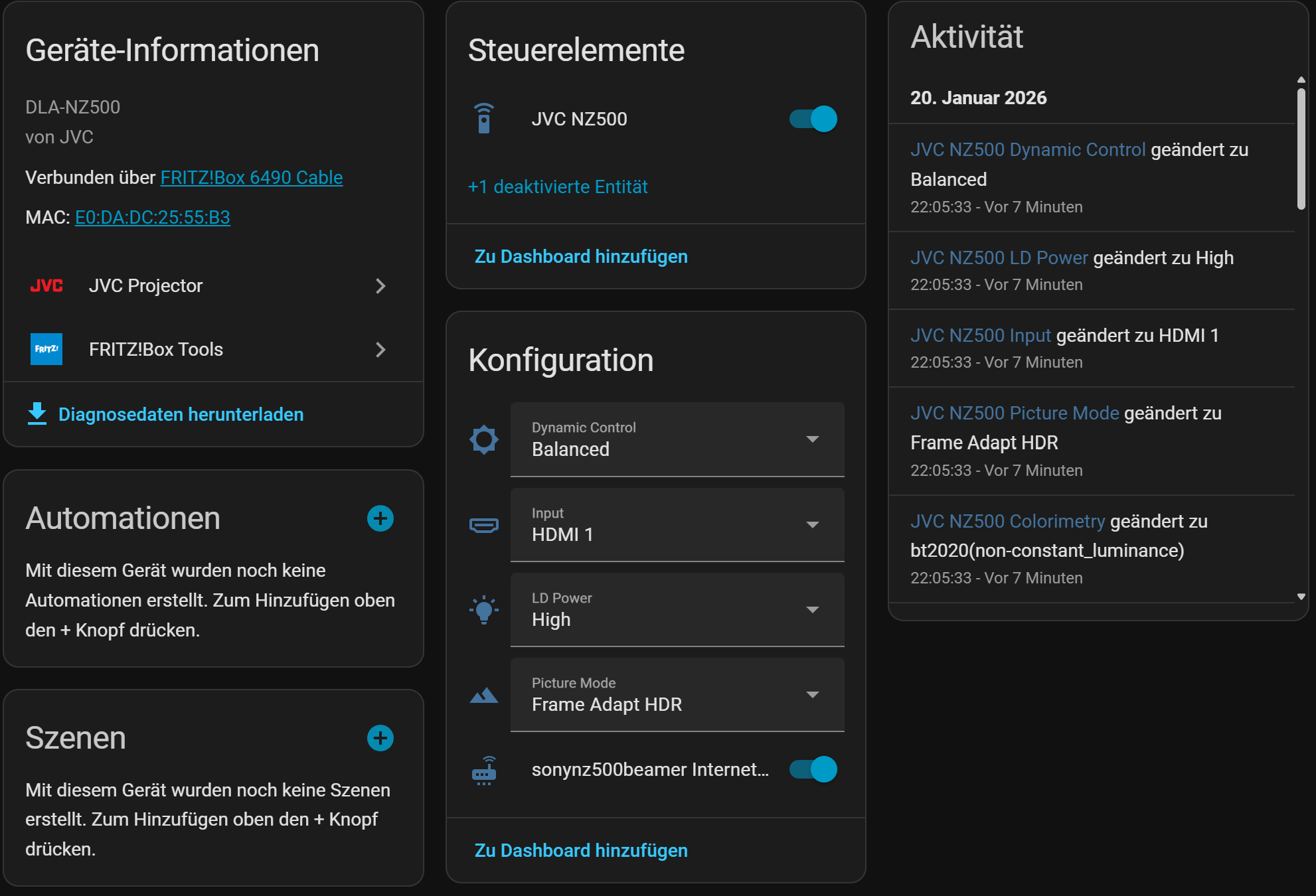 integration: JVC Projector (documentation, issues)