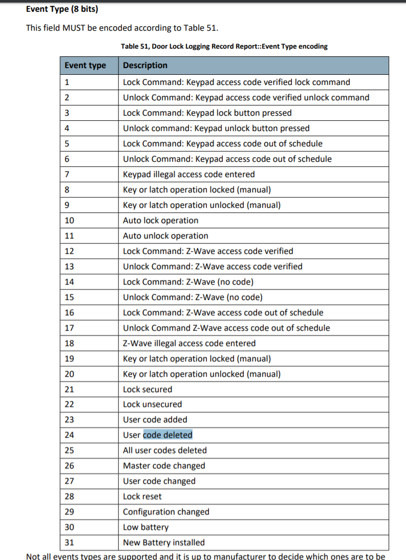 The issue is that either OWZ 1.4 does handle all these codes, or not all locks report these codes. My Schlages do not report any of the code values, but if everything worked as it shows in the document, the alarm_type sensor would report code changes, deleted, etc.