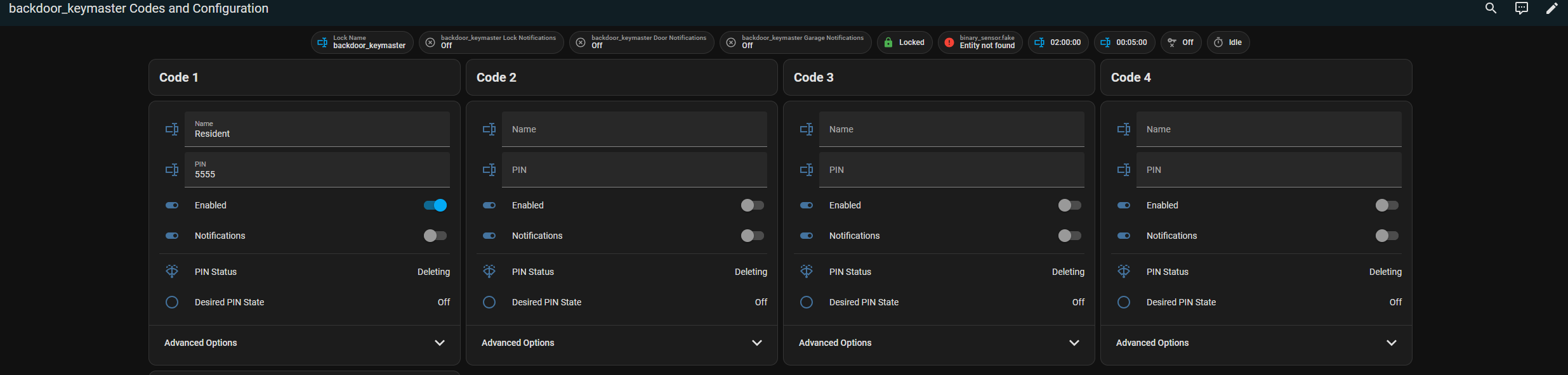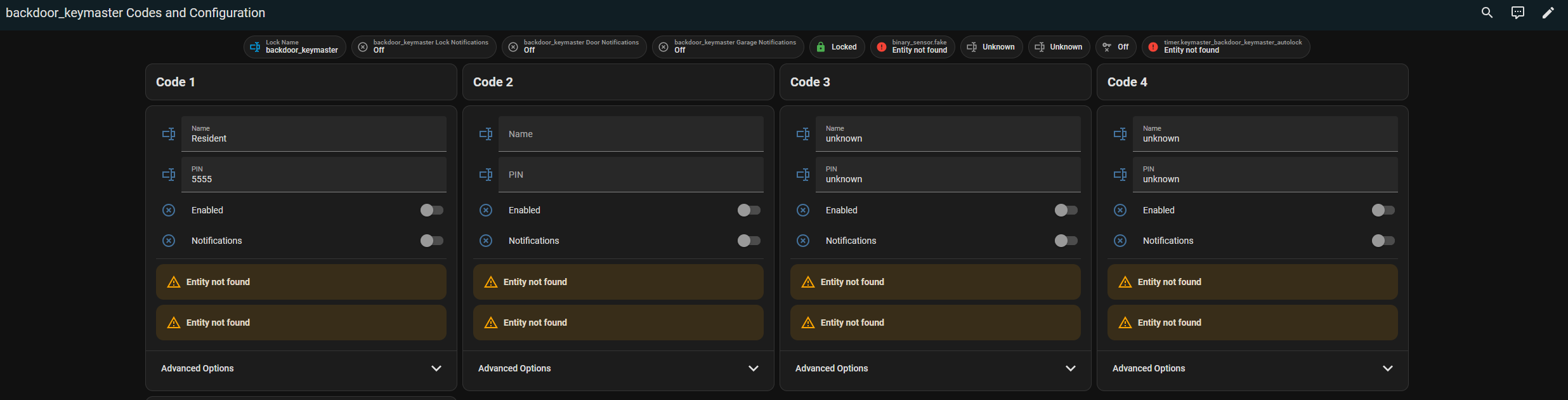 I tried looking through the form but couldnāt find anything on my issue. I believe I followed all the steps to setup keymaster correctly but I am getting āEntity not foundā where I believe the āpin statusā and " pin state" should be. Iām wondering if my locks are just not compatible? They are Schlage Connect Z-wave Plus