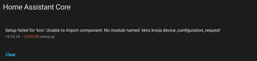 HA 2025.12.4 would require xknx 3.11.0, HA 2026.1 requires xknx 3.13.0. You seem to have 3.8.0 loaded in your screenshot.