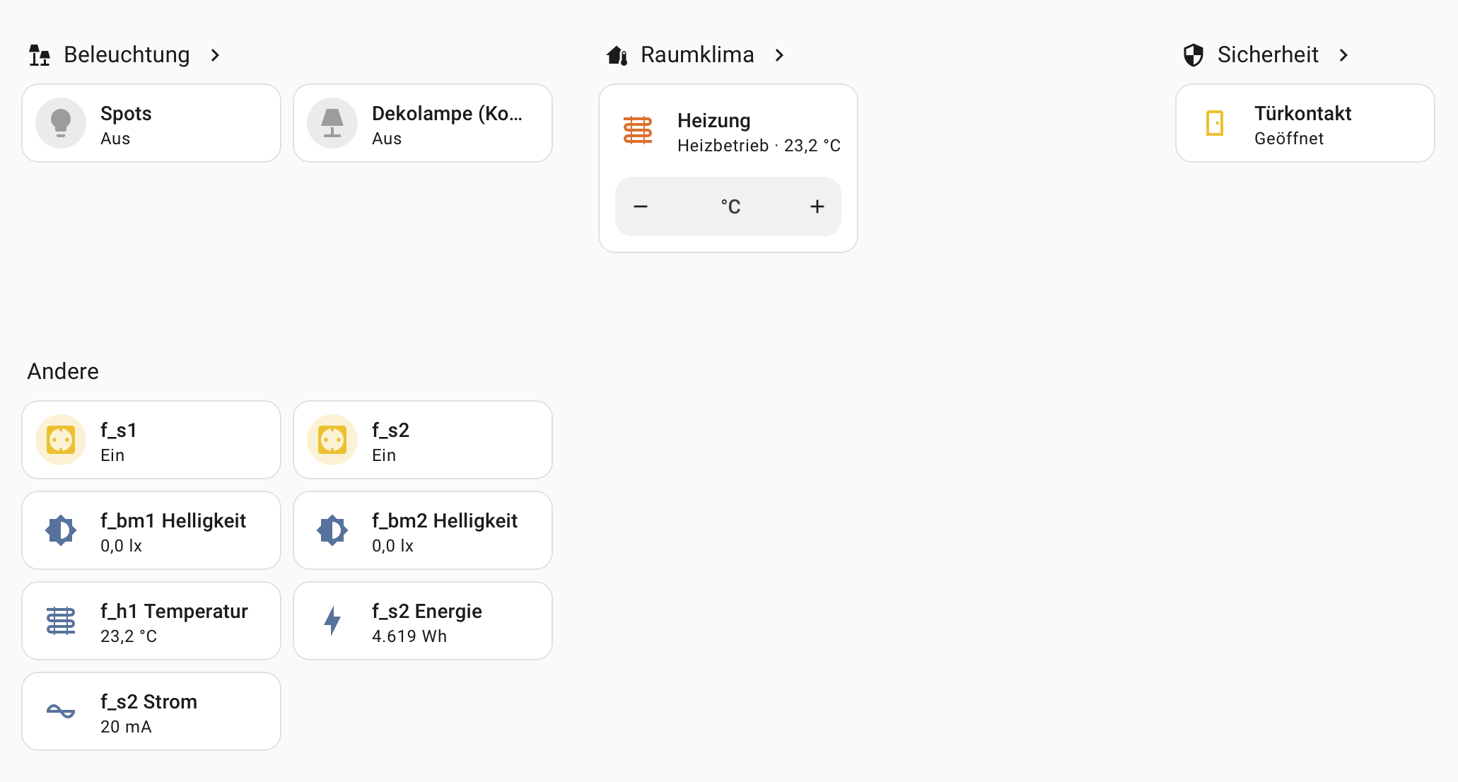 Bonus question: The sockets and sensors appear as “Andere” (others) in the dashboard, is there a way to have something like “Steckdosen” (outlets) and “Sensoren” (sensors) like it is done for “Beleuchtung” (lights)?