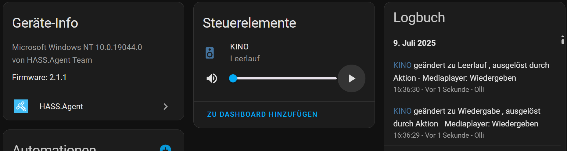 Now it works with the “hass.agent.integration” unfortunately only partially. Partially because the play/pause button jumps back within a second of pressing it.