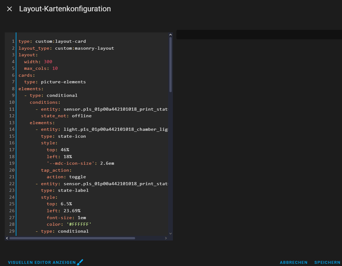You can find an amazing web configurator to easily create a Dashboard for your Bambu printer like the one below at Bambulab Home Assistant Dashboards.