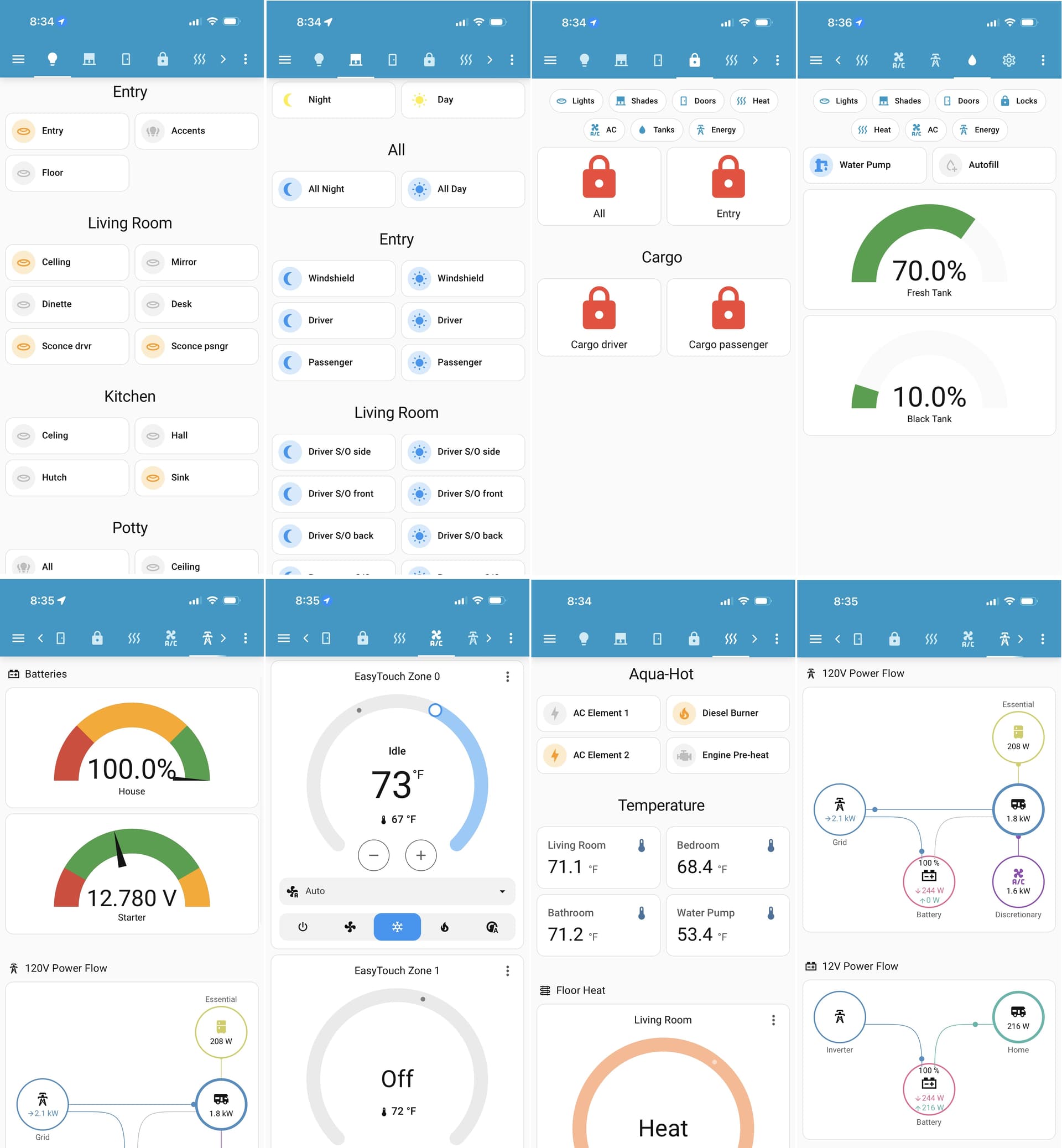 I’ve created a couple of apps (add-ons) that enable Home Assistant to easily work with any RV-C–enabled RV. I’ve been running it myself for about a year and I think it’s finally ready to share. The screenshots below are from my personal dashboard using LibreCoach and a few other HACS integrations.