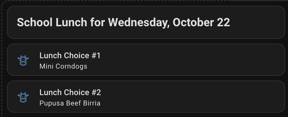 ## <ha-icon icon=""></ha-icon> School Lunch for {{