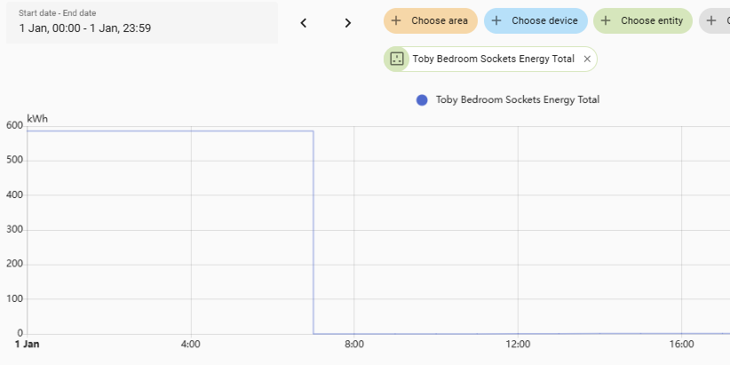 What we should see is state incrementing by the £ import value each hour until it gets to 23:00, and then the next record (midnight) it starts back from zero again. Sum should increment forever from when the sensor was first created.