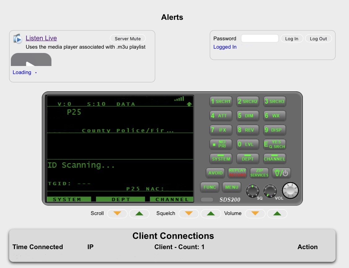 It is a Uniden SDS200 scanner running proscan for the local web server. I attempted to use the “webpage”