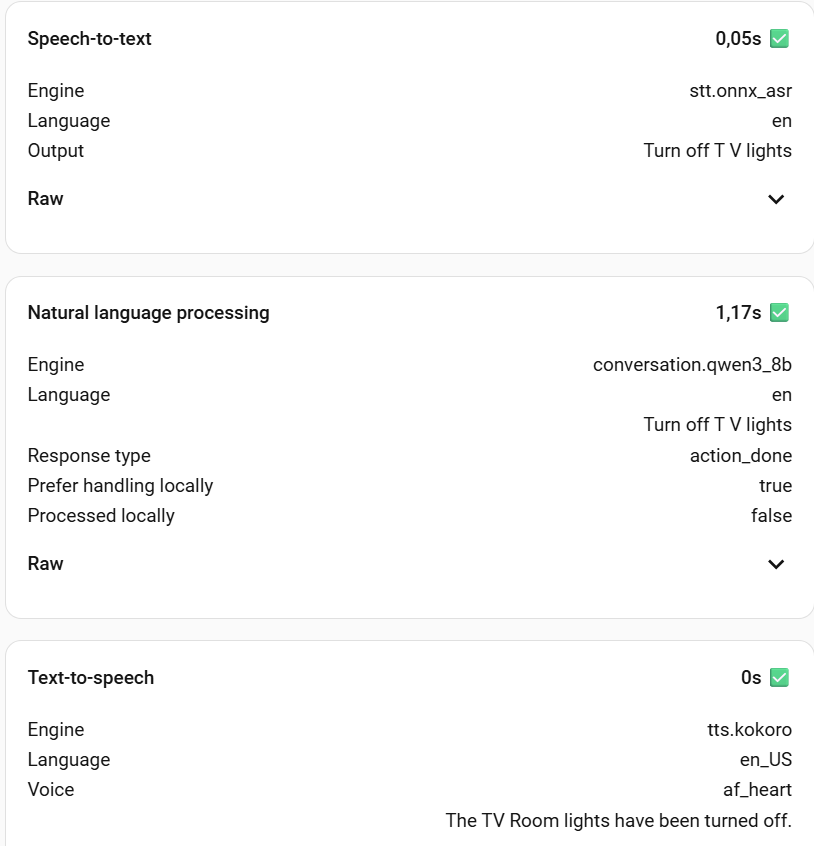 Let me clarify: I’m at the beginning of my voice assistant journey. So far, I’ve focused on understanding the required components, available options, deployment methods, and which workloads can be offloaded to the GPU. Since I didn’t find any reference for an LXC-based deployment of the component I’m using (aside from Ollama), I decided to share what I’ve put together. Wyoming-Kokoro was particularly tricky to set up.There doesn’t seem to be a GPU based working example available, so I had to fork an existing project and add CUDA support.