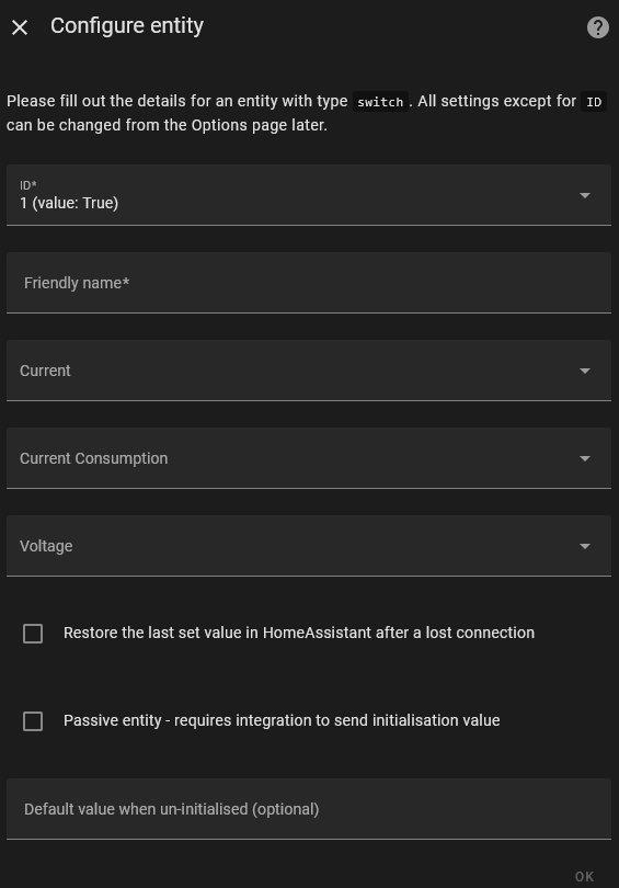 I configured this device with localTuya as a switch with attributes for current (DP18) and voltage (DP20) and added power (DP19) as a power type sensor and “add electricity” (DP17) as a energy type sensor.