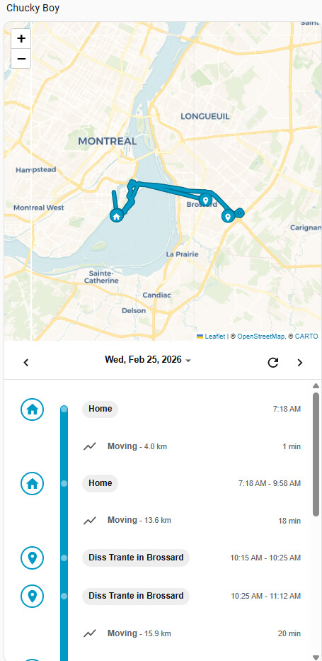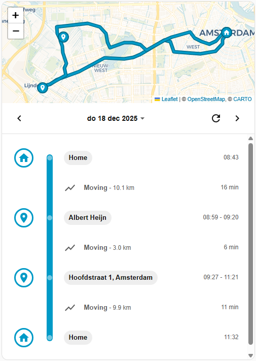 Instead of looking at raw GPS points, the card turns your device_tracker or person history into an easy-to-read story of the day: