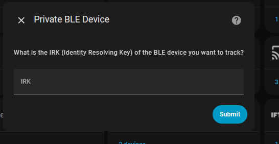 For the BLE setup to get the IRK for each phone (android and IOS), the easiest way to obtain it (for me) is to temporarily connect to teach with a Windows PC (you need administrator rights). Private BLE Device - Home Assistant