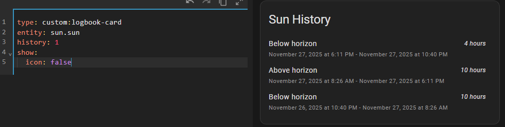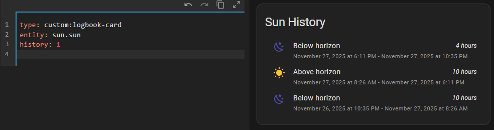 P.S. For those who use card-mod - adding βmod-cardβ here is a quick way to make this card-mod style working. In card-mod 3.x this logbook-card worked fine w/o that βmod-cardβ thing, was broken in card-mod 4.0.0.