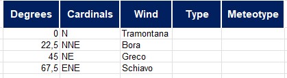 {%- set table = [ { "id": "0", "cardinals": "N", "wind": "tramontana", "type": "string", "meteotype": "string"},