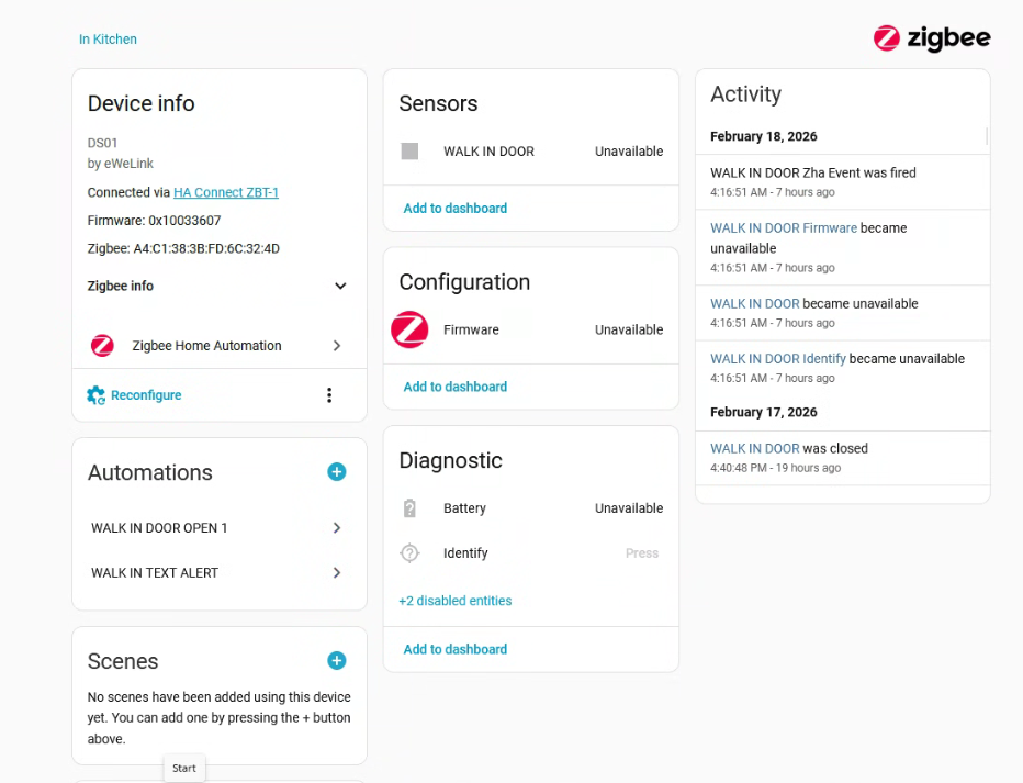 I have tried a few places to search but not even sure how to word the issue to research it, I have one of these running the whole back end of a very busy restaraubnt and one device im losing is the walk in cooler door sensor (with workers who cant remebr to close rthe door!)