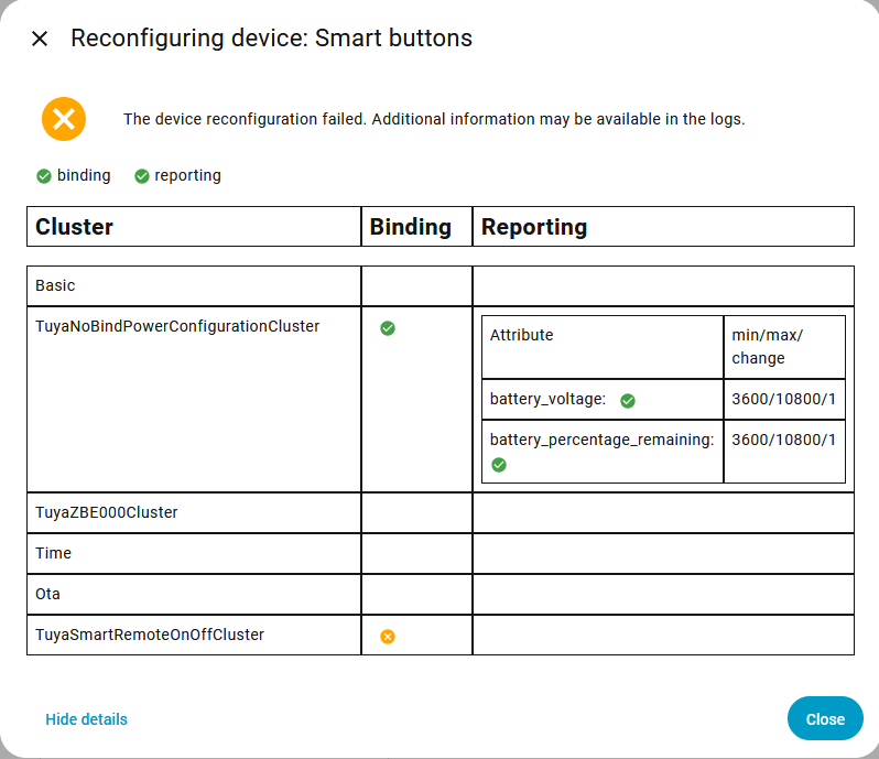 but button2 which has been in the same place for about a year shows connection but does not work at all (had a “button1” as well that was replaced with bedroom buttons when it stopped)