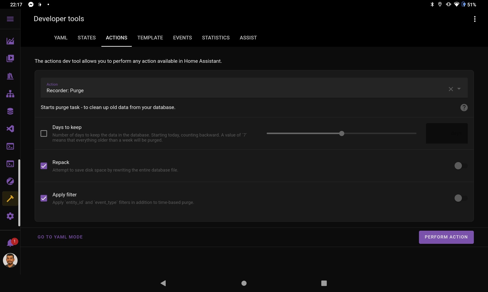 To go a step further, I also used Spook to identify remaining orphaned entities in the database, and I manually triggered a purge with the following service call: