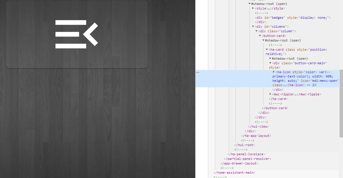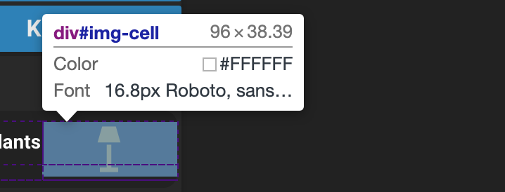 Here are some screenshots of the objects you requested. Interestingly, when I hovered over the icon, it highlighted a small area around the icon. Yet, if I hovered over the empty area between the icon and the text elements to the left, it highlighted a larger area. It’s almost as if there is another element behind the icon.