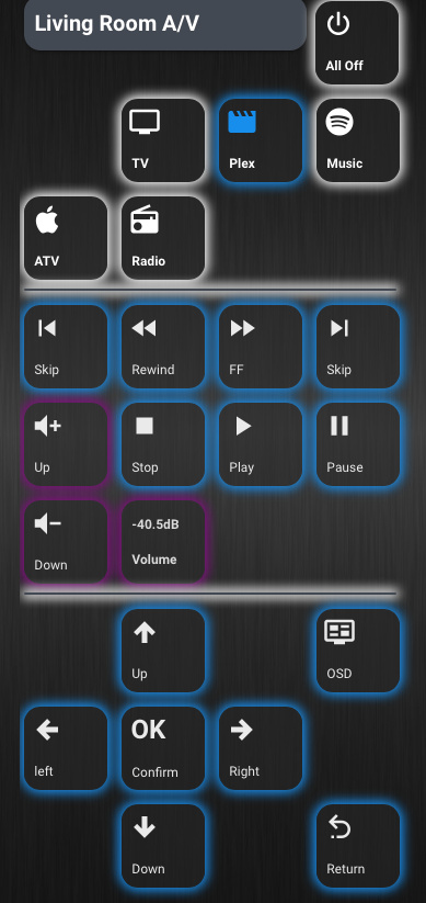 I have standard buttons for everything (now) based on templates then I use the decluttering card to further simplify the config by nesting a button_card_template within a decluttering card config for the AVR commands. If I want to change the standard button that change is now in a single place.